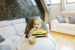 Zacht en flexibel siliconen slabbetje met praktische zak beschermt uw kind tegen vuil tijdens het eten.