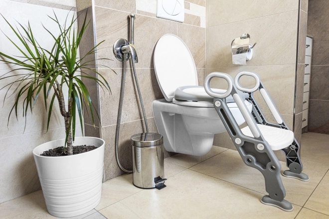 Het trapje kan eenvoudig op elk type toilet worden gemonteerd. Uiteraard is er een inklapmechanisme, zodat je het trapje kunt opbergen wanneer het niet wordt gebruikt en het zo min mogelijk ruimte inneemt.