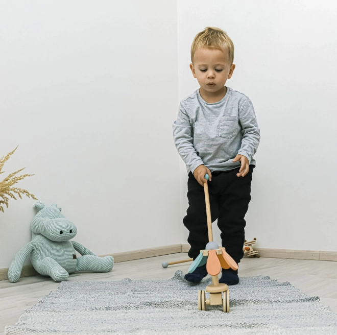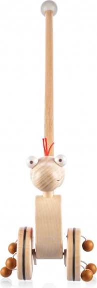 Het speelgoed is niet alleen leuk, maar ook praktisch. De stevige houten stok van 48 cm dient als steun bij de eerste stapjes en het speelgoed heeft geen scherpe randen, wat de veiligheid tijdens het spelen waarborgt. Het is gemaakt van hoogwaardig en duurzaam hout, wat een lange levensduur van het speelgoed garandeert. Het is een geweldige metgezel voor spelen thuis en voor wandelingen buiten.