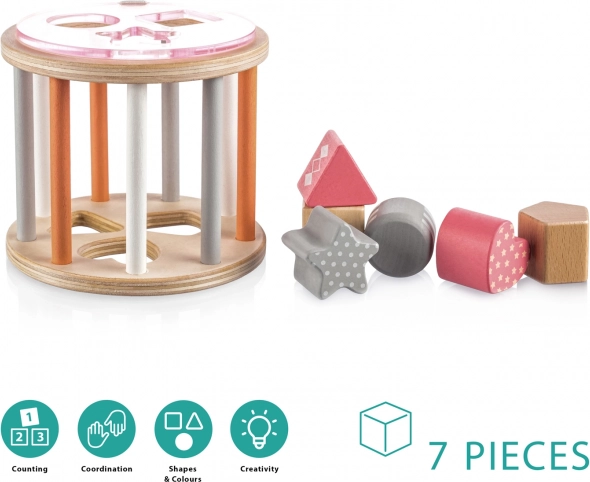 Leren moet leuk zijn, en dat geldt ook voor het ontwikkelen van coördinatie, motoriek en het ontdekken van nieuwe dingen. Het houten insteekspel bestaat uit 6 vormen met verschillende kleuren die in een houten insteekcilinder worden geplaatst. Het kind leert de oog-handcoördinatie te verbeteren en nieuwe vormen en kleuren te herkennen.