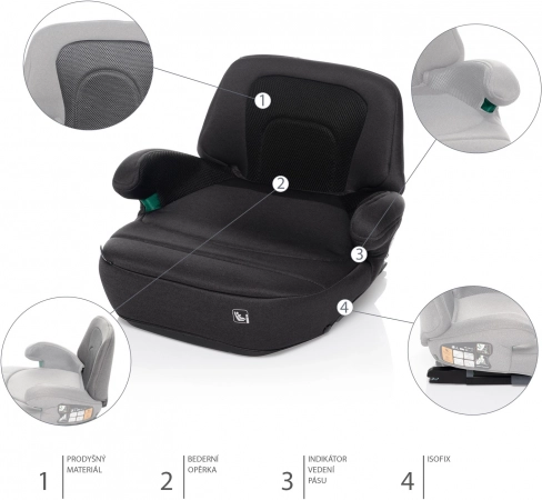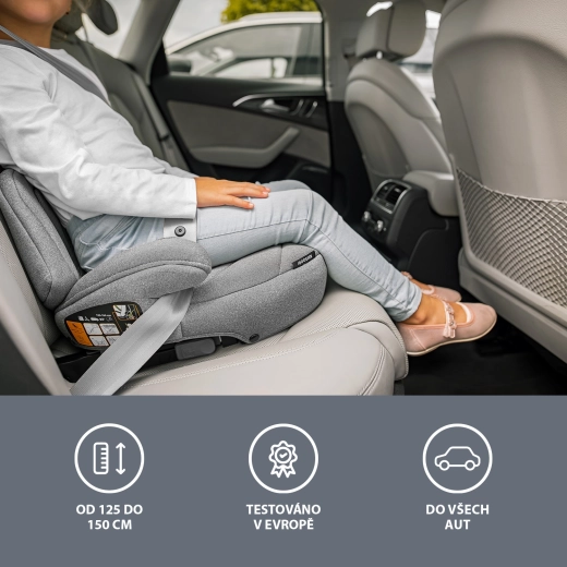 De lendensteun en armleuningen zorgen ervoor dat het kind zich tijdens de rit comfortabel voelt. De hele autostoel is voorzien van zachte vulling en bekleding. De zitverhoger is bedoeld voor kinderen vanaf 125 centimeter en kan worden gebruikt tot 150 cm (12 jaar), zolang een autostoel verplicht is.