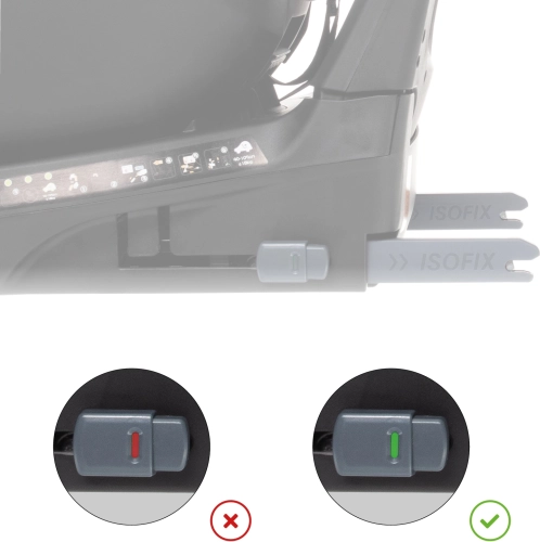 • Vergrendeling tegen draaien van het autostoeltje aan de zijkant (voorkomt vastlopen van de vergrendeling)