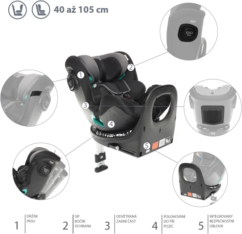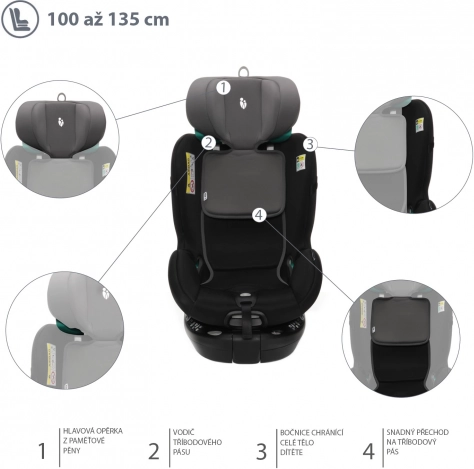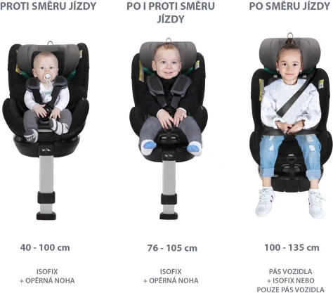 Vanaf de geboorte tot 19,5 kg worden kinderen beschermd door een 5-punts veiligheidsgordel met een hoogwaardige Immi-gesp. In deze fase wordt de autostoel bevestigd met isofix en een steunpoot. Kinderen kunnen tegen de rijrichting in rijden tot 105 cm. Dankzij de draaifunctie kan vanaf 76 cm ook met de rijrichting mee worden gereden. Wanneer het kind groter wordt, stap je eenvoudig over op bevestiging met de 3-punts autogordel. De steunpoot wordt onder de autostoel ingeklapt. Je kind is perfect beschermd vanaf de geboorte tot 135 cm.