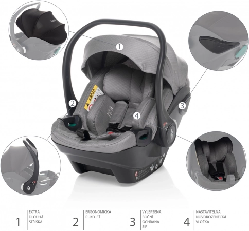 Perfecte zijdelingse bescherming, een verstelbare newborn-inleg van traagschuim, een polypropyleen schaal die schokken nog beter absorbeert, getest in Europa – dat is het autostoeltje XS i-Size.