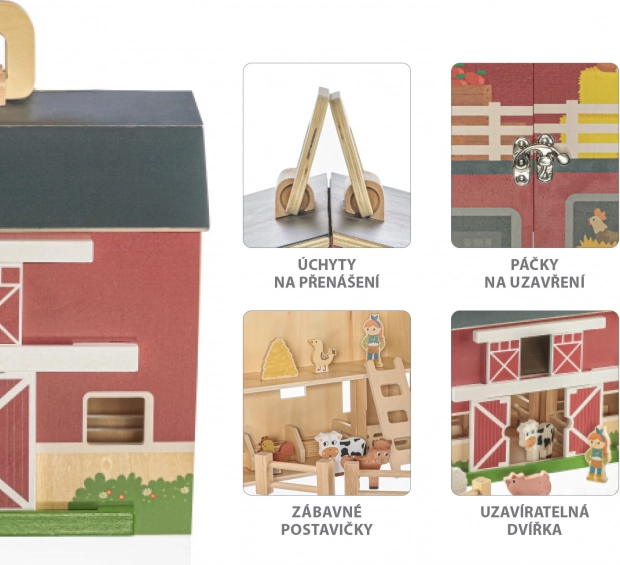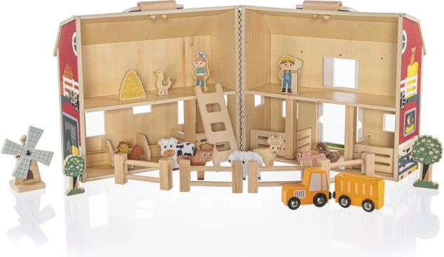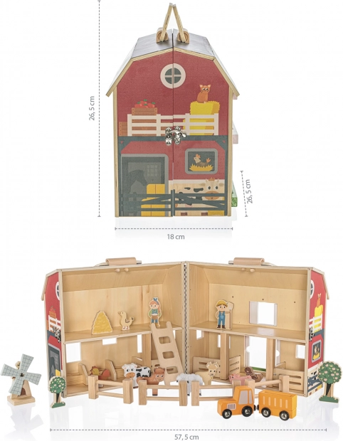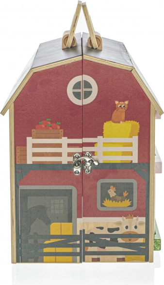 Geweldig boerderijplezier dat je overal mee naartoe kunt nemen! Deze houten draagbare boerderij met een praktisch handvat en een veilig slotje geeft kinderen de mogelijkheid om het leven op de boerderij altijd en overal te ontdekken. De te openen deuren zorgen voor een extra speeldimensie.