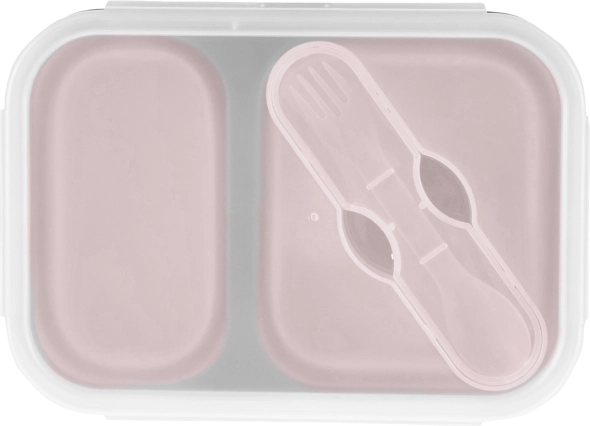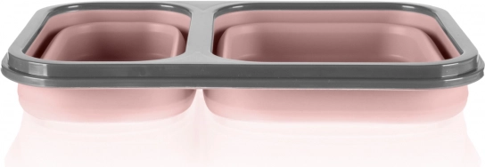 Deze lunchbox is gemaakt van veilig food-grade siliconen, dat niet giftig en breukbestendig is. Het grote voordeel is dat hij na het opeten van de inhoud eenvoudig kan worden ingeklapt – zo verkleint hij zijn formaat met tot wel 60% en is hij de ideale, compacte metgezel voor uitstapjes. Het deksel sluit zeer goed af en heeft een ingebouwd vakje voor bestek; lepel en vork zijn inbegrepen in een praktisch etui.