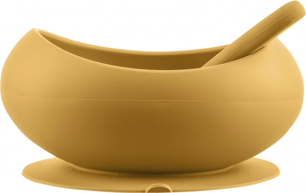 De verhoogde randen zijn een geweldige hulp, ook voor een kind dat leert zelfstandig te eten. Het voedsel dat het kind op het lepeltje schept, glijdt dankzij de verhoogde en gevormde randen niet van de lepel. Een groot voordeel van siliconen is de weerstand tegen geuren en verkleuring. Als er voedsel zo lang in de kom blijft zitten dat het moeilijk schoon te maken is, volstaat het de kom in heet water uit te koken – op deze manier kan de kom ook worden gesteriliseerd. Ideaal voor soep, pasta, yoghurt, pap, fruit en andere gerechten, geschikt vanaf de eerste hapjes.