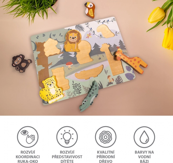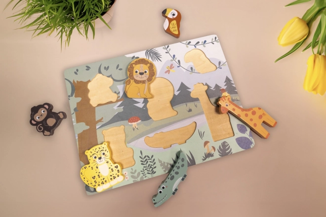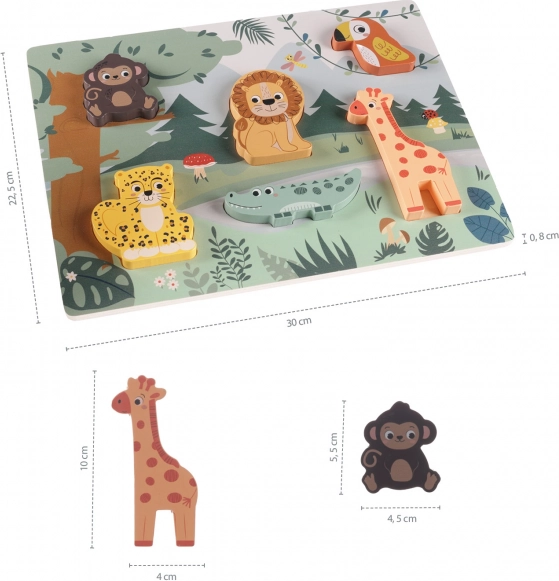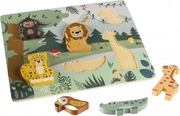 De houten Jungle-puzzel is een geweldige manier om je kinderen kennis te laten maken met wilde dieren en planten uit de jungle, en dat alles vanuit de veiligheid van je eigen huis. Met elk stukje dat je kind toevoegt, komen de kleuren en vormen van de jungle tot leven, wat hun vermogen om beelden te herkennen stimuleert en de fijne motoriek verbetert.