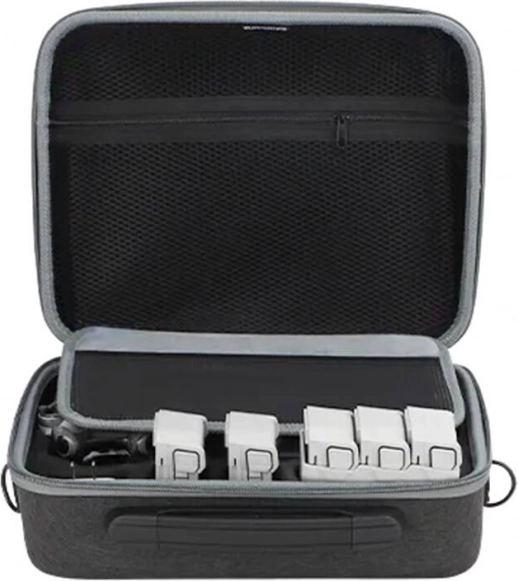 De SUNNYLIFE tas voor de DJI Mini 4 Pro is ontworpen voor maximale bescherming en organisatie van je uitrusting. Het interieur met gevormde vakken biedt veilige ruimte voor de drone, controller (vastgezet met riem), lader en tot 5 batterijen. Elk item heeft zijn eigen plek, zodat niets elkaar raakt of rammelt tijdens het transport.
