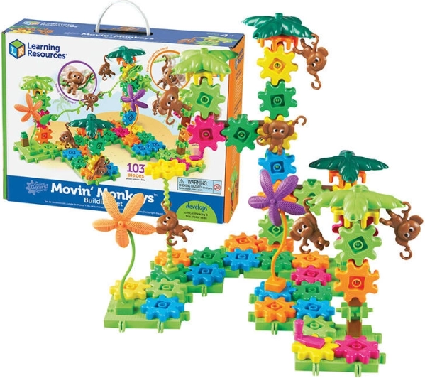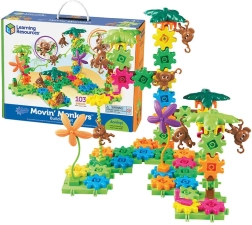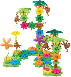 Geef uw kind iets dat plezier en leren combineert. De bouwset Tandwielen! Tandwielen! Tandwielen! Bewegende Aapjes bevat 103 plastic stukjes in verschillende vormen - waaronder tandwielen, bouwbasissen, bladeren, lianen en kleine aapjes. Dit alles stelt u in staat om een kleurrijke jungle vol met kronkelige paadjes, bewegende onderdelen en meer te creëren! Zo kan uw kind creativiteit, logisch denken en motorische vaardigheden ontwikkelen. Het speelgoed is geschikt voor kinderen vanaf 4 jaar.