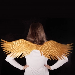 Prachtige gouden engelenvleugels, ideaal als accessoire bij uw engelenkostuum. Gemakkelijk draagbaar dankzij de elastiek.