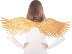 Creëer een elegante engelenlook met deze gouden vleugels. Ideaal voor kostuums en thematische feesten. De vleugels hebben een spanwijdte van ongeveer 96 cm. Geschikt voor personen vanaf 14 jaar.