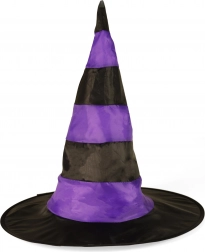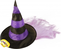 Deze toverhoed in zwart-paarse kleur met paarse haren is het ideale accessoire voor elk halloweenfeest of carnaval.