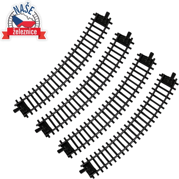 Gebogen rails 4 stuks voor uitbreiding van de baan. Compatibel met RegioJet, ČD, SC Pendolino en ZSSK. Eenvoudige installatie, vloeiende rit, langere baan.