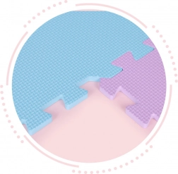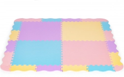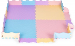 Kleurrijke kinderspeelmat van EVA-schuim voor veilig spelen en de eerste stapjes. Wordt gelegd als een puzzel, heeft een antislipoppervlak, mogelijkheid om een omranding/droge ballenbak te maken en een afmeting van 141,5 × 141,5 cm. Set van 24 onderdelen, dikte 1 cm, eenvoudig te onderhouden en thermische isolatie van de vloer.