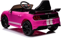 De stijlvolle elektrische kinderauto FORD Mustang GT500 Shelby in roze biedt een realistische sportautolook, te openen deuren en lichteffecten. Dankzij de robuuste constructie en de comfortabele zit zorgt hij voor een veilige en leuke rit voor kinderen. Realistische details, LED-verlichting en te openen deuren stimuleren dagelijks avontuur in de tuin en thuis.