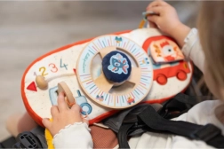 Het textiele paneel met stuur van Lilliputiens is het ideale speelgoed voor kleine avonturiers. Kinderen kruipen in de rol van kleine bestuurders, onder toezicht van kip Paulette, koe Rosalie en schaap Yvon. Het stuur is ontworpen voor een veilige gebruikservaring: