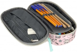 De indeling bestaat uit een verplaatsbare flap met elastische lusjes voor schrijfgerei, een ritsvak voor kleinigheden en nog twee extra vakjes voor perfecte orde. De dubbele rits met ergonomische treklipjes maakt openen ook voor kinderhanden eenvoudig. De stijl wordt afgemaakt door het pluizige diermotief en de bedrukte voering.