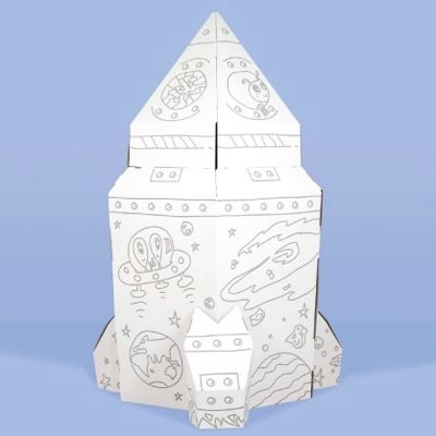 Deze grote kartonnen raket verandert na montage in een indrukwekkend speelelement dat de verbeelding en creatief spel stimuleert.