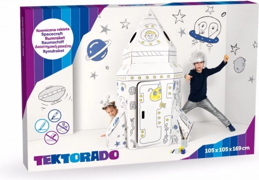 De reusachtige kartonnen ruimteraket bezorgt kinderen uren speelplezier. Dankzij de grote afmetingen 105 × 105 × 169 cm biedt hij veel ruimte om te spelen, is gemaakt van duurzaam karton, heeft een CE-conformiteitsverklaring en is gemaakt in Polen.