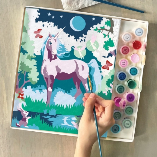 Set schilderen op nummer – eenhoorn. Eenvoudig creatief plezier voor kinderen en volwassenen, ontspanning en een prachtig eindresultaat. Een geweldig cadeau voor liefhebbers van knutselen.