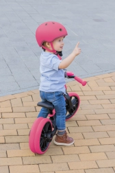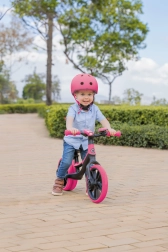 De robuuste en duurzame constructie is ontworpen voor dagelijks gebruik, terwijl de geïntegreerde draaghandgreep het hanteren voor ouders vergemakkelijkt. De praktische voetsteun laat kinderen glijden en een stabiele houding oefenen. De loopfiets is een perfecte stap richting fietsen zonder zijwieltjes.