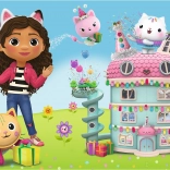 Houten puzzels met het thema Vrolijke Gabby en haar vrienden brengen kinderen naar het sprookje van Gabby's Poppenhuis. Deze puzzels hebben: