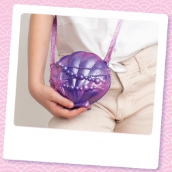 Een schelpvormige koffer dient als perfecte verpakking voor de pop en haar accessoires, waardoor deze gemakkelijk te vervoeren en op te bergen is.