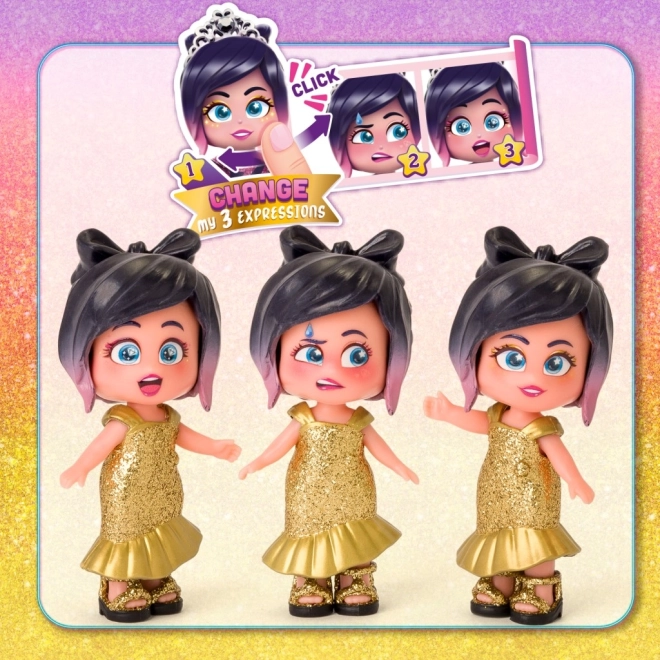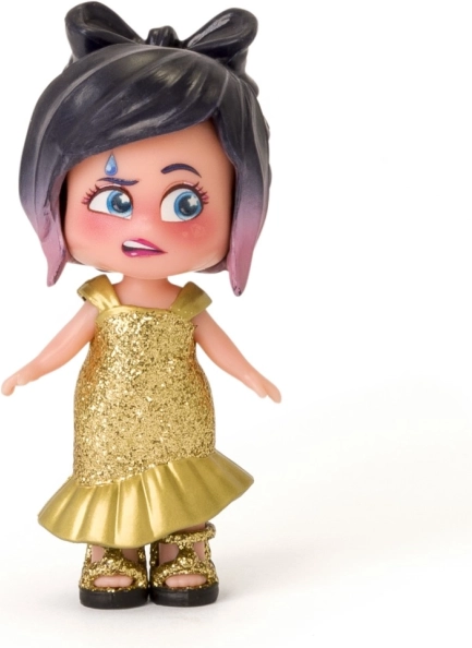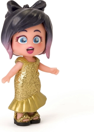 Gouden glinsterende jurken en accessoires laten de pop Ava stralen op elk evenement en stimuleren creativiteit bij het kiezen van modieuze combinaties.