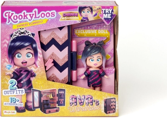 Ontdek de wereld van mode met de speelset KookyLoos Ava. Deze geweldige set bevat een exclusieve pop Ava met stijlvolle outfits en accessoires, waardoor je haar stijl en gezichtsuitdrukking kunt veranderen naar jouw fantasie.