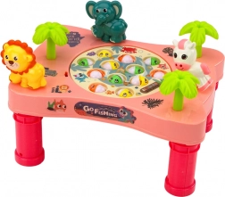 Het roze speeltafeltje met het thema “Go Fishing” tovert de kinderkamer om tot een klein aquarium. De draaiende schijf met visjes die hun mond openen zorgt voor een dynamische uitdaging die kinderen motiveert tot precies mikken en snel reageren. Dankzij de felle kleuren, vrolijke dieren en melodieën is het spel geliefd bij jong en oud.