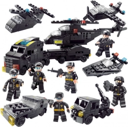 Ontdek een wereld vol actie met de universele bouwset voor kleine ordehandhavers! De set bevat 343 stukjes en 6 politiefiguren, waarmee je een auto met raketlanceerder, een kruiser, een politieboot, een raketboot, een jachtvliegtuig en een politiehelikopter bouwt. De elegante zwarte uitvoering, stickers voor personalisatie en veiligheid bevestigd door CE en EN71 maken het een geweldig cadeau voor kinderen vanaf 6 jaar.