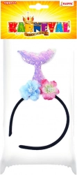 Verander je in een handomdraai in een betoverende zeemeermin. Deze paarse haarband is versierd met lieve bloemetjes en een opvallende vissenstaart, wat je kostuum een sprookjesachtige flair geeft.
