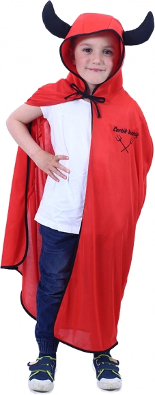 Stijlvolle kinderduivel-cape in rood-zwart verandert elk kind in een schattig duiveltje. Met capuchon en aangezette hoorns, ideaal voor carnaval, Sinterklaas en kinderfeestjes. Universele maat voor kinderen van ca. 3–10 jaar en een comfortabele lengte voor prettig dragen en een opvallend effect.