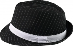 Fijne witte strepen op een zwarte basis geven de hoed een tijdloze stijl die je gemakkelijk combineert met een kostuum of een smart-casual outfit.