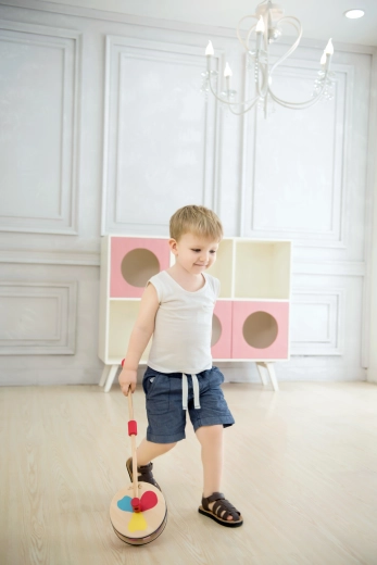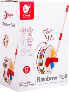 Ontdek de vreugde van de eerste stapjes met de duwkar van Classic World. Het houten speelgoed met stille, rubberomrande wielen en regenboogachtige visuele effecten tijdens het rijden, fascineert kinderen en ouders. Tijdens het bewegen creëert het kleurige illuminaties en aangename klikkende geluiden die motiveren om te lopen en de grove motoriek en balans ontwikkelen. Gemaakt van hoogwaardig hout en niet-giftige verven – een veilige keuze voor kinderen vanaf 12 maanden.