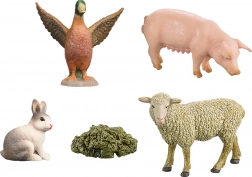 Boer, biggetje, schaap, eend en haas – alles wat kinderen nodig hebben voor boerderijspeelplezier. Inclusief voer om nog meer speelscenario’s te creëren.