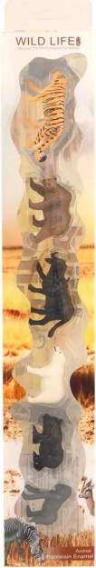 Set van 6 realistische figuurtjes van wilde dieren van hard rubber in een doosje. Formaat 4–7 cm, duurzaam en geschikt om te spelen en te leren. Perfect voor kleuterschool en onderweg.