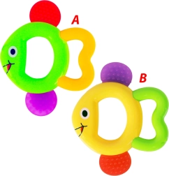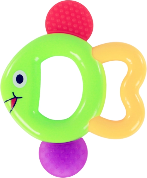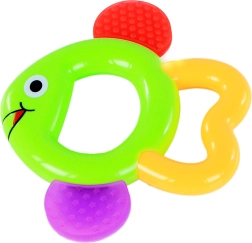 Deze lichte en gemakkelijk vast te houden rammelaar/bijtring is ontworpen voor kleine kinderhandjes. De rammelgeluiden stimuleren het gehoor, contrasterende kleuren ondersteunen de visuele oriëntatie en de veilige bijtstukken verlichten het ongemak bij het doorkomen van de eerste tandjes.
