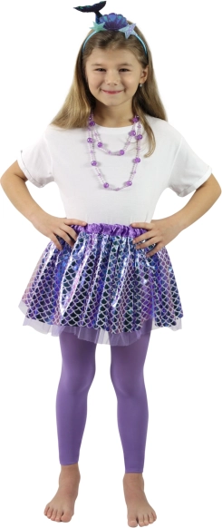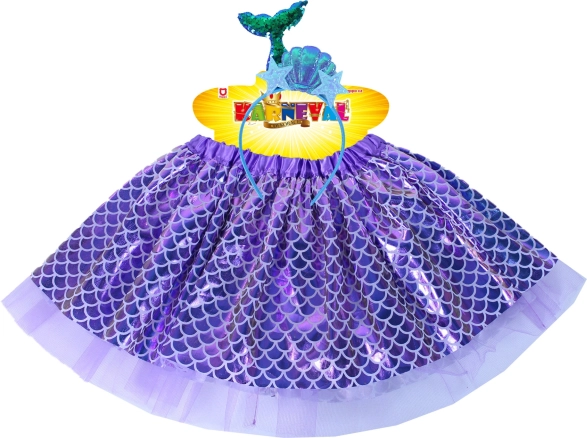 Dit kostuum wordt geleverd met een stijlvolle haarband met vissenmotief en is perfect voor dansoptredens, carnavals of gewoon spelen als zeemeermin. De lengte van het rokje is ca. 28 cm, wat comfort en gemakkelijke bewegingsvrijheid garandeert.