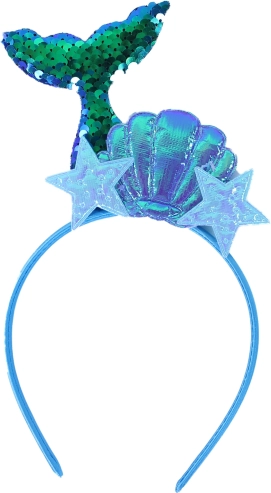 Haarband versierd met een glanzende zeemeerminnenstaart, schelp en zeesterren geeft elke outfit een unieke look.