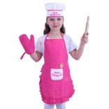 Ideaal kostuum voor elke kleine kokkin! Dit roze kostuum bevat een schort, koksmuts, ovenwant en houten keukengerei - alles wat je nodig hebt voor leuk speelplezier.