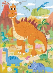 Ontdek de wereld van dinosaurussen met prachtig geïllustreerde puzzels, ideaal als eerste puzzelervaring. Dankzij de grotere stukken kunnen kinderen ze gemakkelijk hanteren en is het leggen zowel leuk als leerzaam. De voltooide afbeelding van 60 × 44 cm fleurt de kinderkamer op en geeft trots op een zelfgelegd kunstwerk.