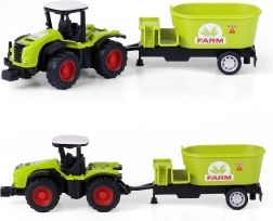 De tractor met afneembare aanhanger is niet alleen een geweldige toevoeging aan de speelgoedcollectie van kinderen, maar ook een middel om de verbeelding te stimuleren en te begrijpen hoe landbouwmachines functioneren. De totale lengte van de set is 18 cm, wat zorgt voor gemakkelijk vasthouden en hanteren.