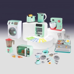 Deze kinderen keukenset in grijs en turquoise bevat alles wat kinderen nodig hebben om kokje te spelen. De set bevat: