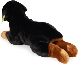 Deze gedetailleerd afgewerkte pluchen rottweiler biedt de perfecte combinatie van zachtheid, kwaliteit en duurzaamheid. De fraaie zwart‑bruine kleurstelling en de realistische liggende houding maken hem tot een geweldige knuffelvriend én een mooie decoratie voor de kinderkamer. Met de hand genaaide afwerking staat garant voor een precieze look en lange levensduur.