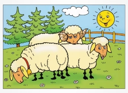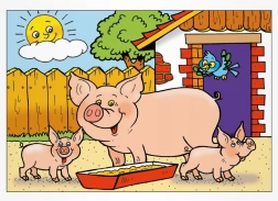 8 (kat met kittens, schaap, hond, biggen, haan en kippen, paard met veulen, koe met kalf, gans)