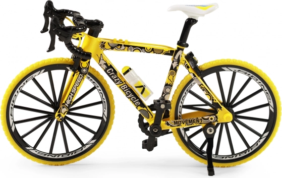 De miniatuur gele mountainbike is een geweldige keuze voor kinderen die van actie en beweging houden, maar ook voor volwassen verzamelaars. Dankzij de vrijloop van de wielen rijdt hij gemakkelijk weg en rolt soepel over een vlak oppervlak. Het realistische design komt tot zijn recht zowel op de plank als tijdens het spelen.