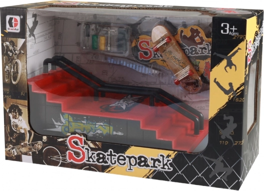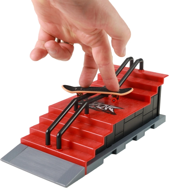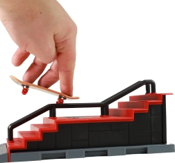 Creëer je eigen fingerboard-avontuur met dit mini skatepark, perfect voor het oefenen van tricks. De set bevat een ramp met trap en stabiele leuning, zodat je allerlei tricks kunt uitvoeren, net als in een echt skateboardpark.