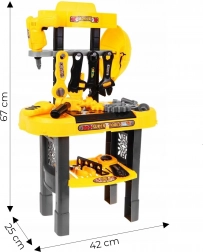 De werkplaats is gemaakt van veilig plastic en is bedoeld voor kinderen vanaf 3 jaar oud. Het biedt vele uren plezier en educatieve spelletjes.